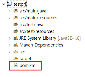 - testprj/src/main/resources 폴더 : 자원파일 관리