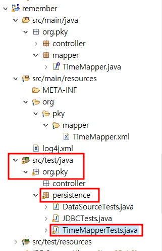 : src/test/java - org.pky.persistence 경로에 생성한다.